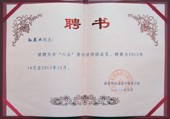 黄清平律师获得的“十佳形式法律援助案卷”…